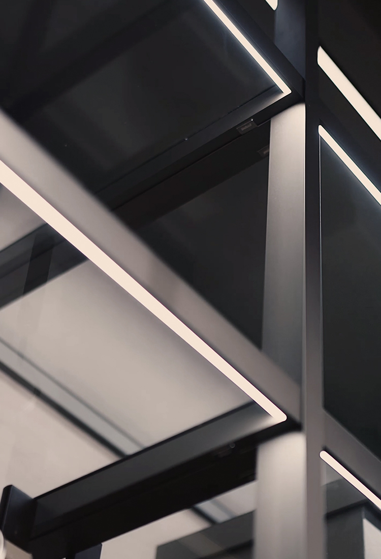 极窄铝框勾勒通透轮廓,一体化的视觉秩序令线条更纯粹