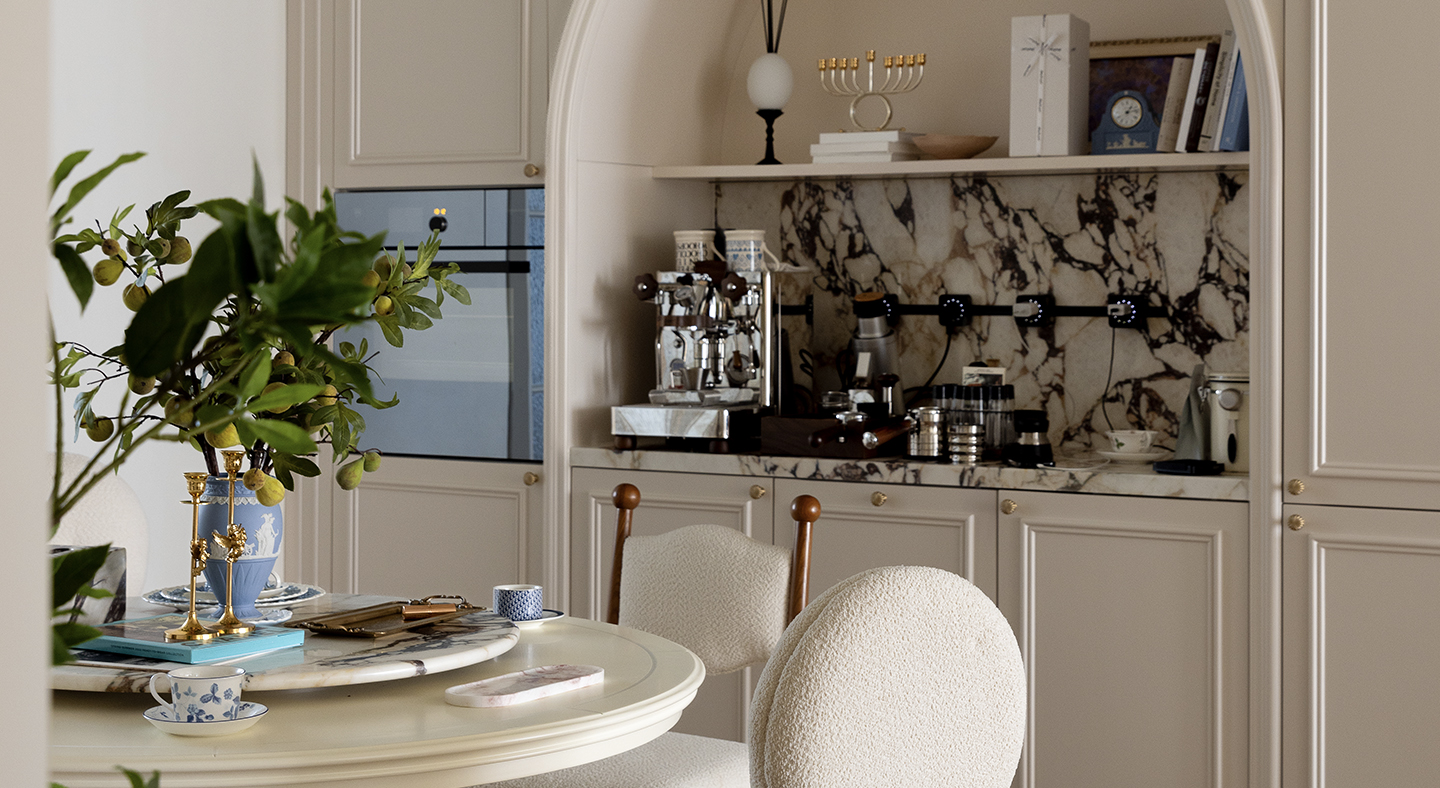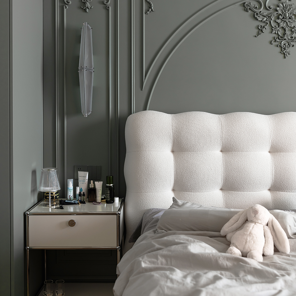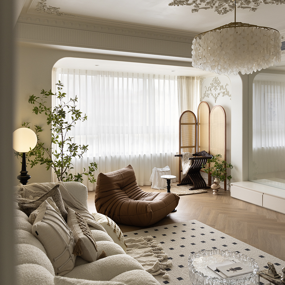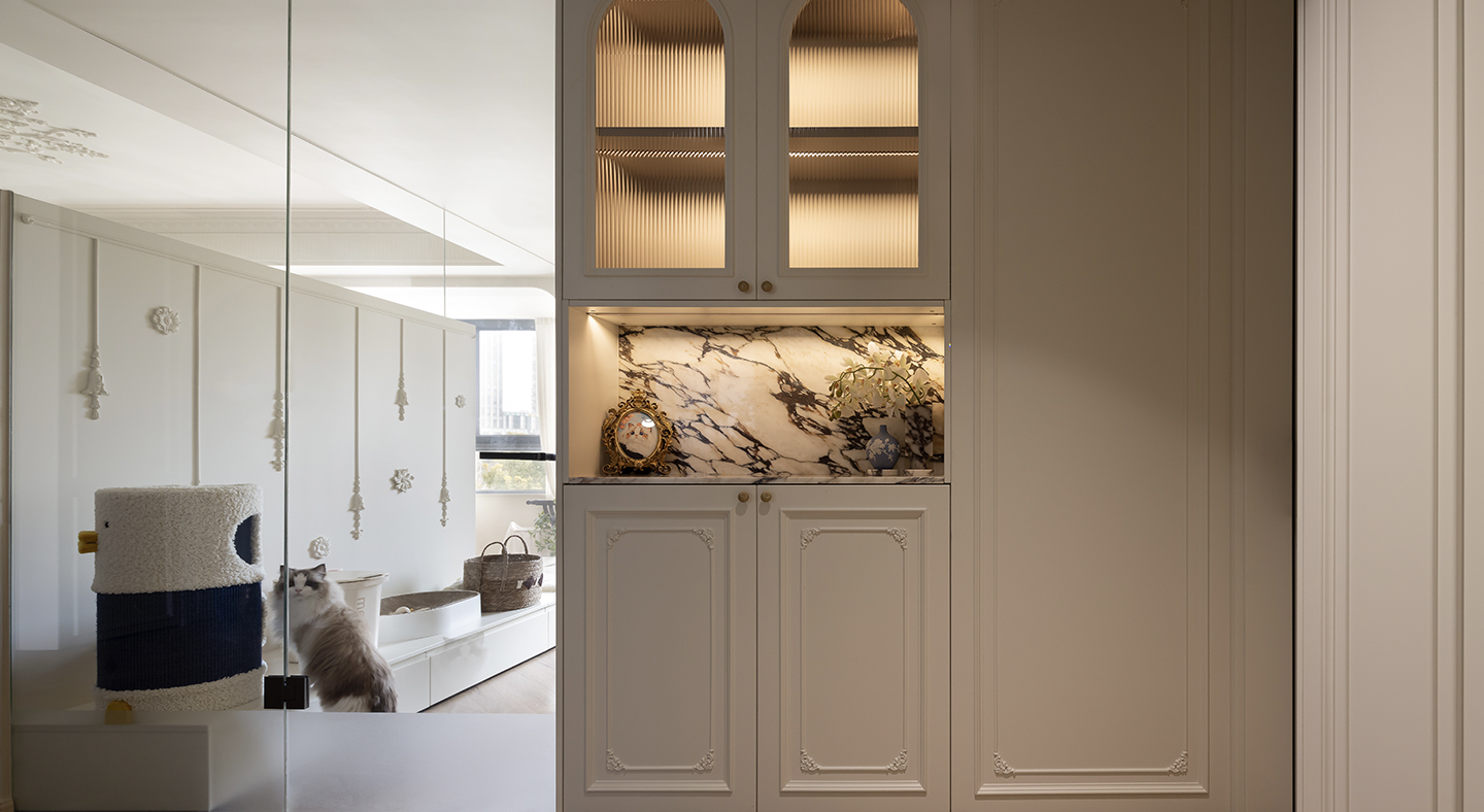 奶油色作为墙面基调,搭配法式精细的石膏线