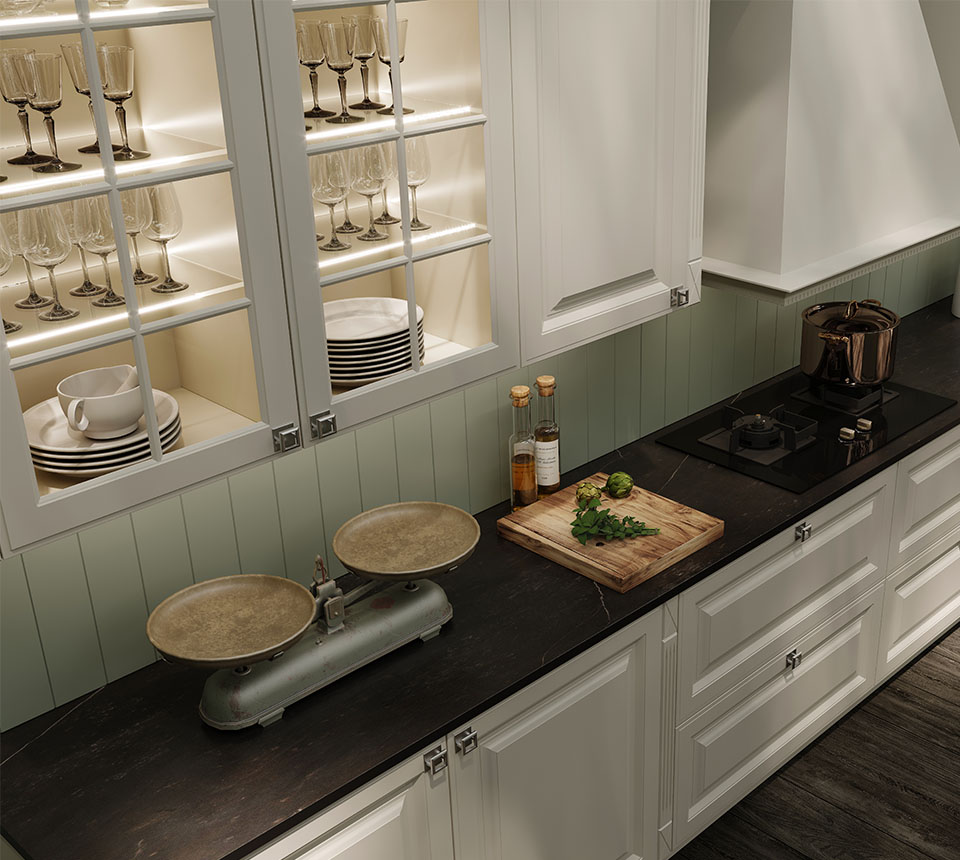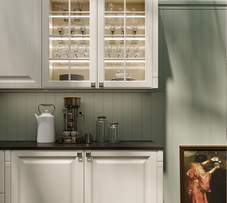 玻璃巧妙的在柜体中散发着温柔的光芒,它不拘于时代和流派