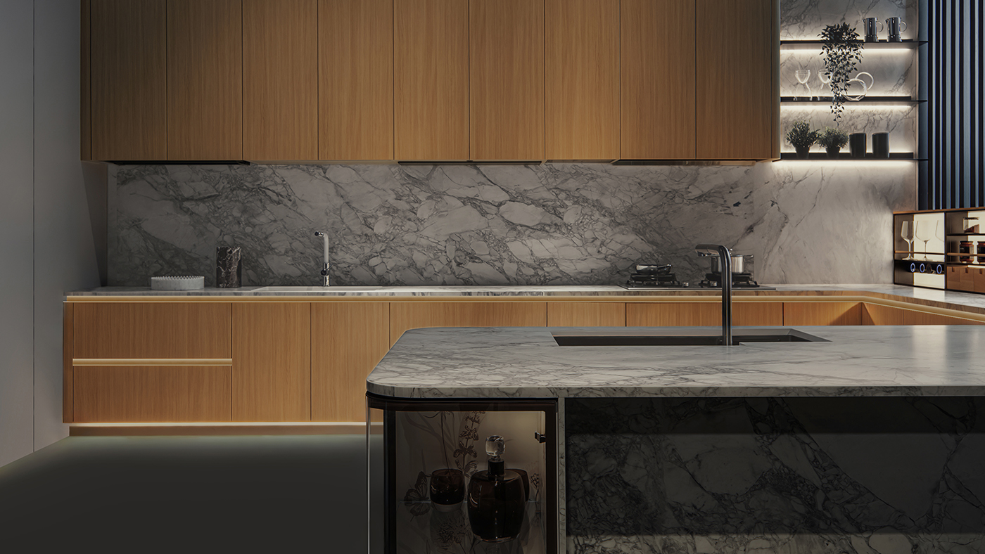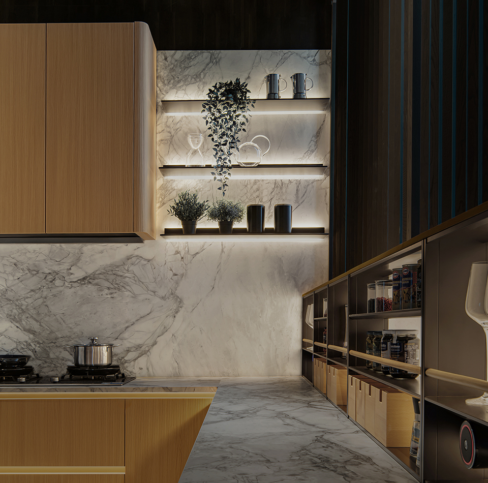 甄选意大利进口板材,以自然纹理与极简线条勾勒空间格调