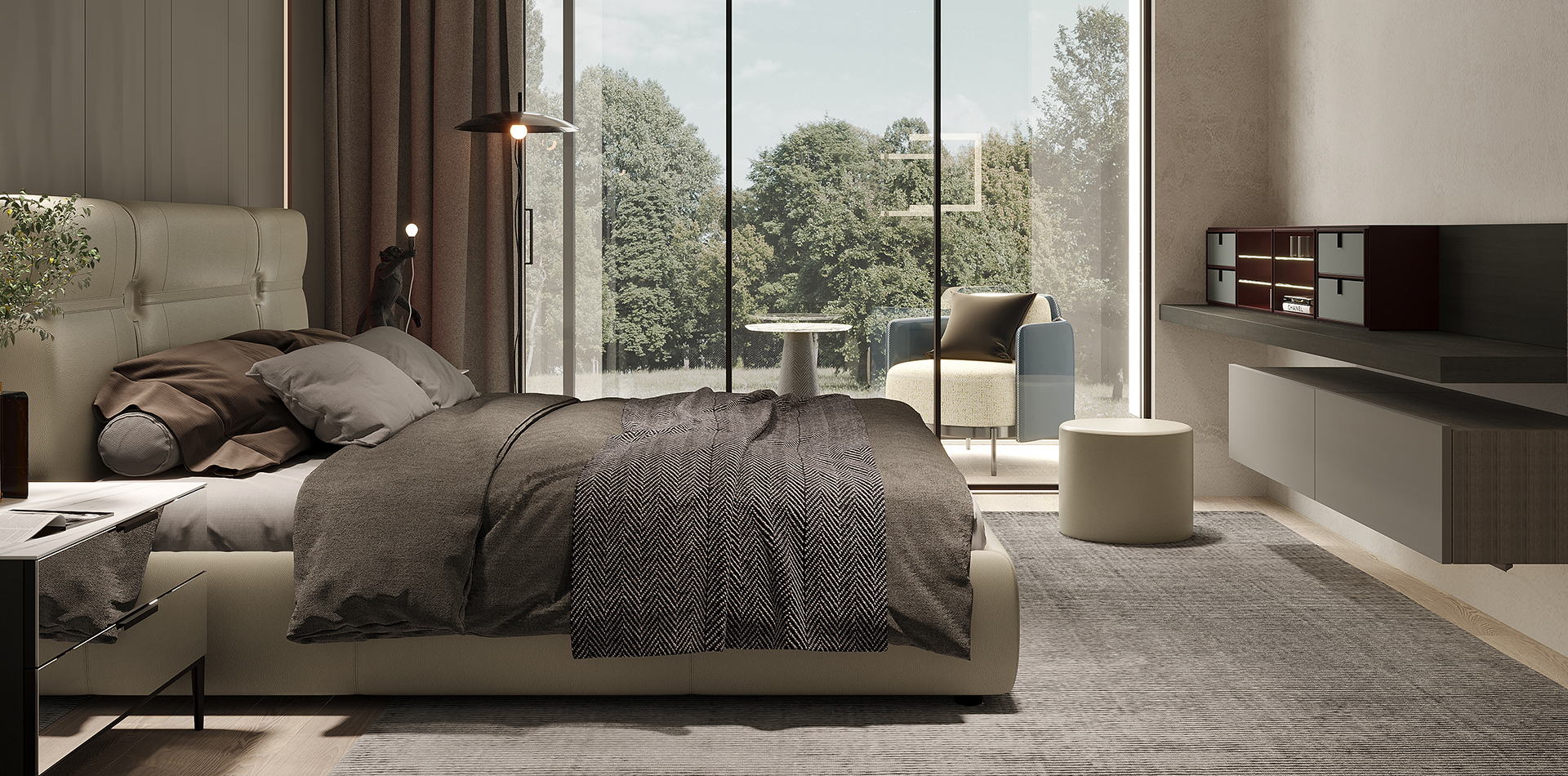 卧室继续演绎现代侘寂美学